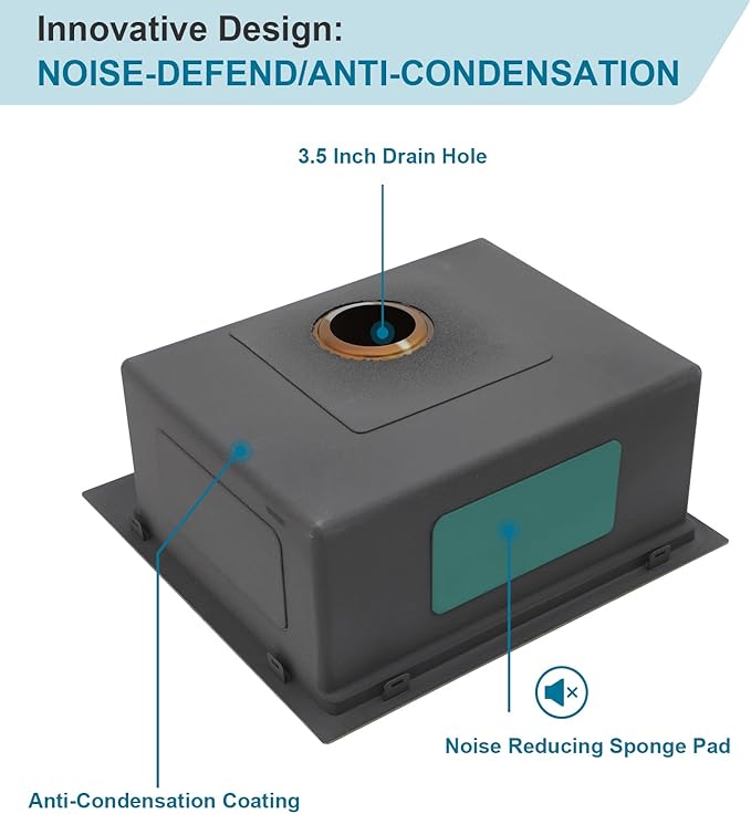 - Noise Reduction and Moisture Control: Our gold RV sink comes equipped with a 3mm sound guard undercoating and thick rubber padding to minimize noise and vibration, creating a quieter kitchen environment. The anti-condensation Thickening Noise Reduction Coating effectively absorbs sound and isolates condensation, enhancing overall comfort