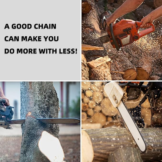 - CHAIN FEATURES: Durable And Safety Design, Precision, Heat-Treated, Full-Chisel Chain, Cuts Smoothly, Hardened Rivets, Premium German steel, Japanese Chrome-Plated Technology, Sharp Cutters, with Oil Storage Grooves Resists Corrosion.
