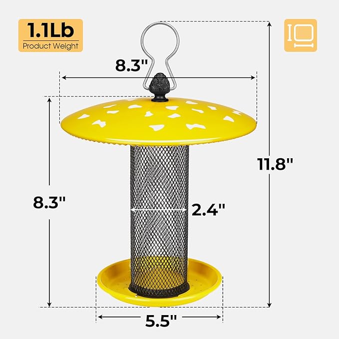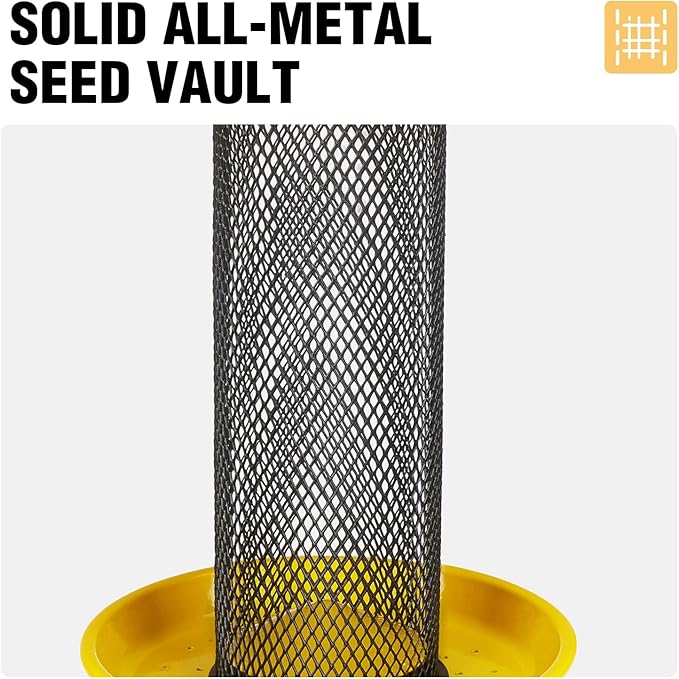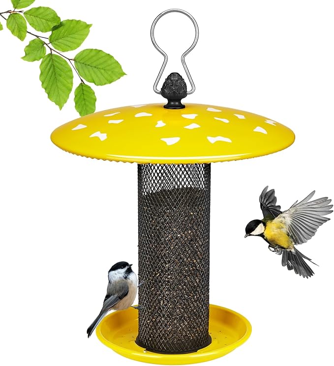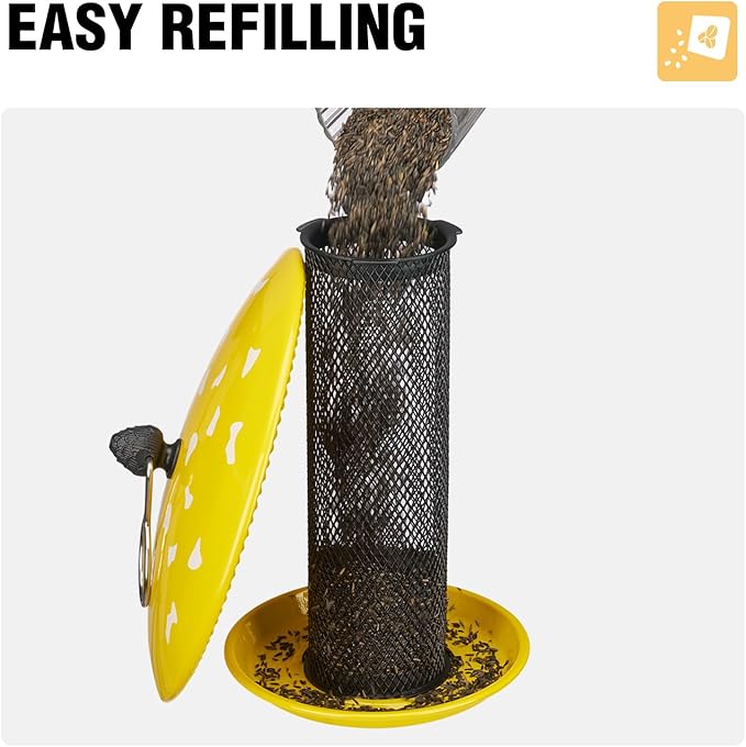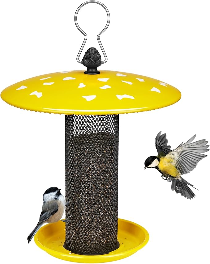 Veehoo Tube Bird Feeders for Outdoors Hanging-Finch Feeder for Nyjer Thistle Seed, Mushroom Metal Mesh Bird Feeder for Outside Hanging, Yellow