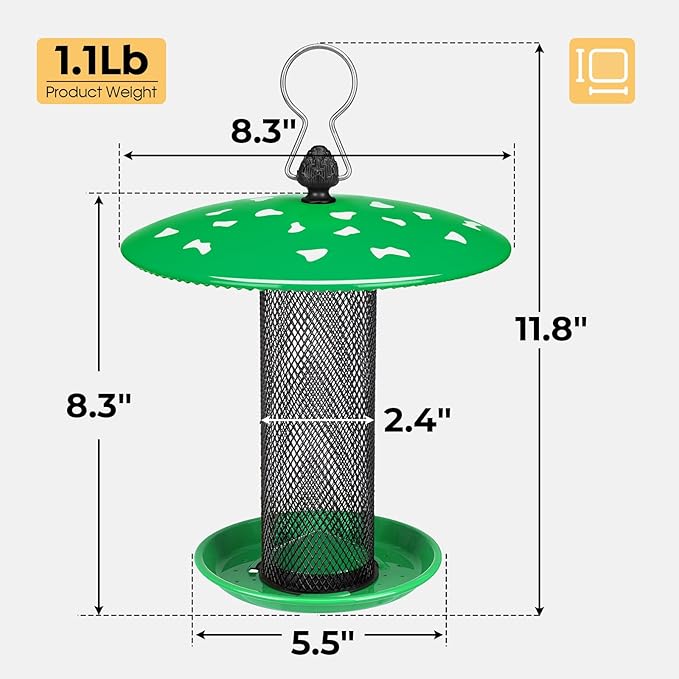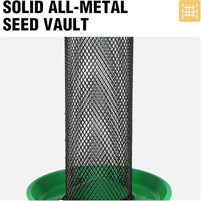 - All-metal Construction: The bird feeder is entirely made of metal, featuring a powder-coated wire mesh design to prevent rust. The sturdy metal construction can extend the lifespan of the bird feeder, helping you save on bird feeding costs