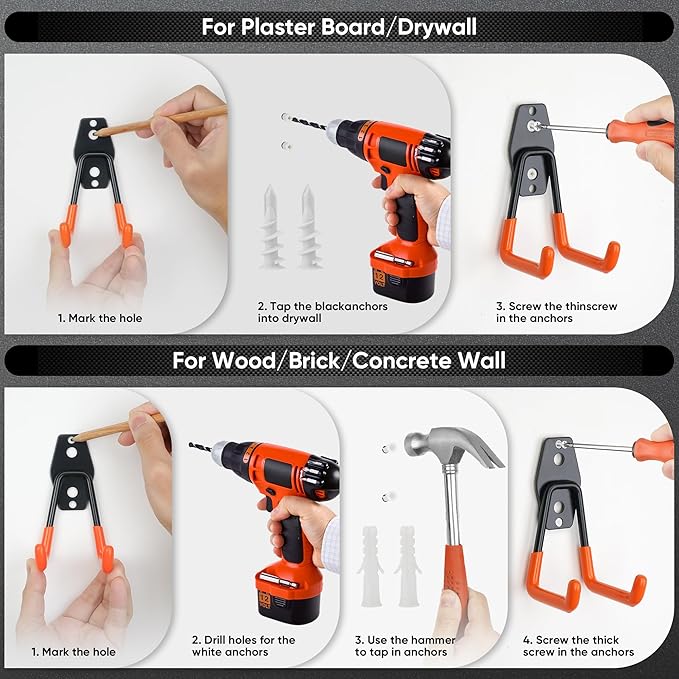 - Effortless Installation: We know many customers struggle with incorrect installation locations or want to move their garage hooks but often find themselves short on screws. That’s why Nacial provides ample screw sets—our 26-hook set includes 3*50 screws. Each garage hook comes with 3 types of screws, and with just a drill or screwdriver, you can effortlessly install them on drywall, wood, concrete, or brick walls. Enjoy quick and easy organization with Nacial!