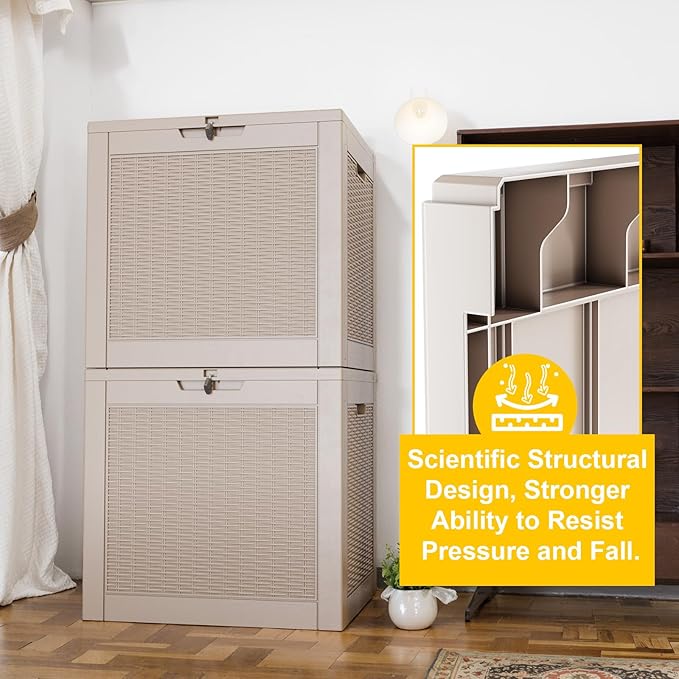 - YEAR-ROUND DEFENSE: The aggregate resin with a wood grain pattern on this deck storage box delivers a blend of beauty and functionality. It's equipped with waterproof, UV-resistant, fade-resistant, rust-resistant, peel-resistant, and warp-resistant features, requiring minimal maintenance over the next several years