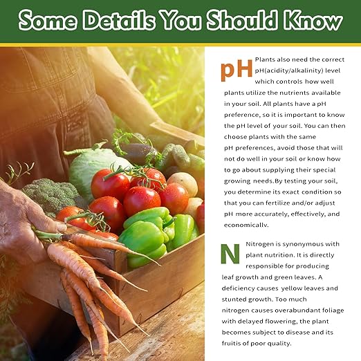 - What’s in the Box & Support You Can Count On: Along with our a bottle of 2-in-1 soil test strips (100 strips), you'll receive a soil sampling spoon (for collecting accurate soil samples), a centrifuge tube (for preparing the soil standard solution), a detailed user manual and a reference chart for soil pH and nitrogen levels for plants. Plus, a dedicated team of soil quality experts ready to offer rapid and efficient responses round the clock through live chat and email. We are committed to taking our customers' feedback seriously, as our sole aim is to deliver products and services that hold genuine value for you