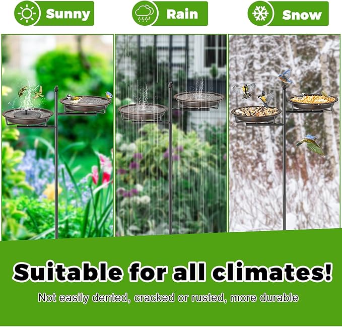 - 【Durable Material】Heavy duty metal stakes provide strong support for this bird bath, keeping it upright and firmly in the soil of the yard. Strong load-bearing capacity, not easy to fall apart, break, blow away. Weatherproof and rustproof, durable that can be used for long time outdoor.