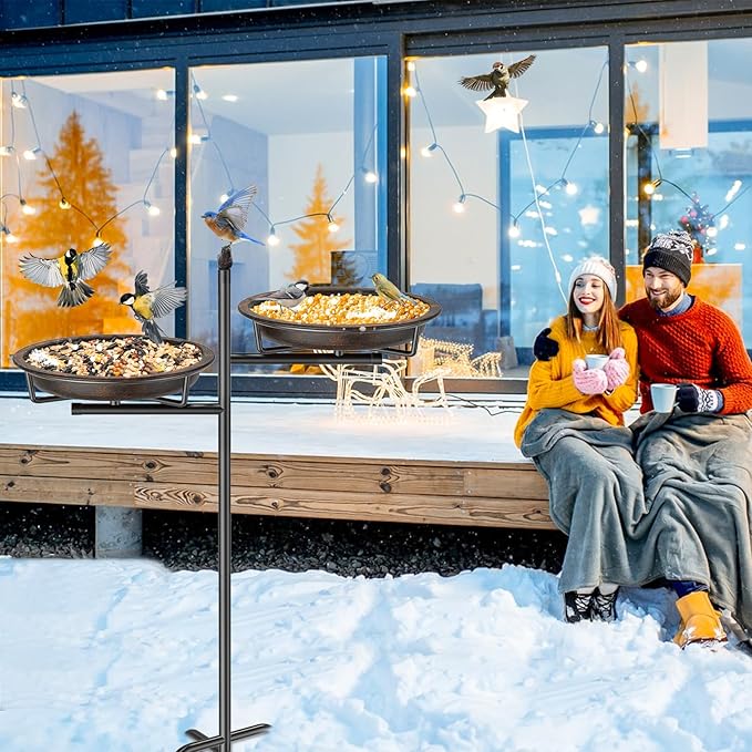 - 【2-in-1 Bird Bathtub & Feeder】After the upgrade, an additional basin has been added, which can meet the feeding and bathing needs of birds at the same time, making it very suitable for outdoor gardens. And it is very easy to clean and fill. Keeping it clean is very important for the health of birds.