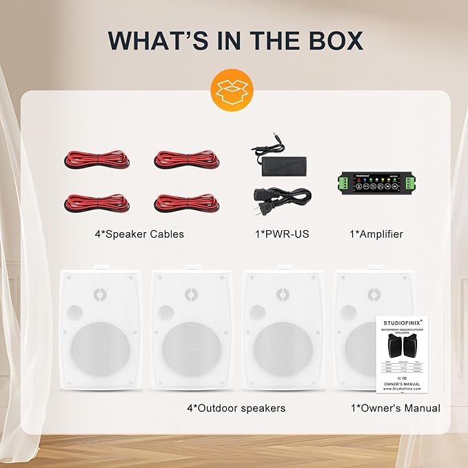- Complete Package and Exceptional Support: The package includes 4*passive speakers,4*speaker cables,amplifier*1,power supply*1,manual*1 . We're committed to your satisfaction. STUDIOFINIX offers a 1 - year warranty service, backed by our professional customer support team. If you have any technical questions or need assistance, we're here to help