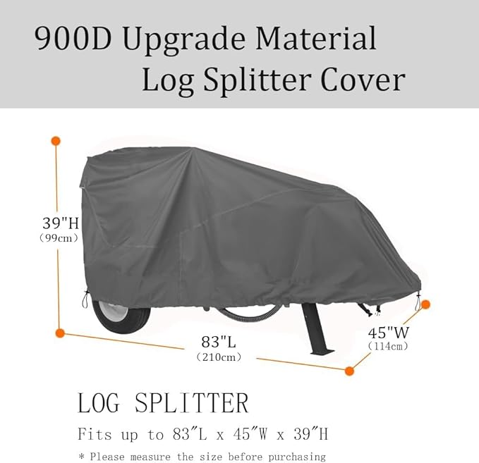 Log Splitter Cover Waterproof 900D Oxford Cloth 83" x 45" x 39" Suitable for 15-45 ton Gas or Electric Log splitters Weather-Resistant Wood Splitter Cover (15-45 Ton Grey)