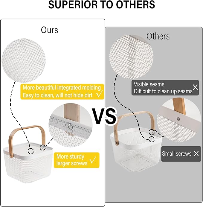 - 🧺Wide Use & Storage: Basket with handle helps keep your life organized and can be used to store a variety of household items and all kitchen essentials. Perfect for organizing and decorating in various scenarios, such as your home, office, kitchen, living room, bathroom, bedroom, pantry, picnic, and toy room.