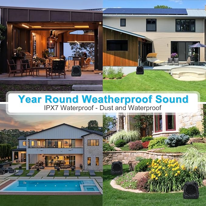 - 【Realistic Rock-Design】The outdoor wireless Bluetooth speaker, encased in durable resin and fiber materials, showcases a realistic rock-like design that seamlessly integrates with your garden, patio, deck, and lawn. Perfect for enhancing your outdoor living spaces with high-quality audio.