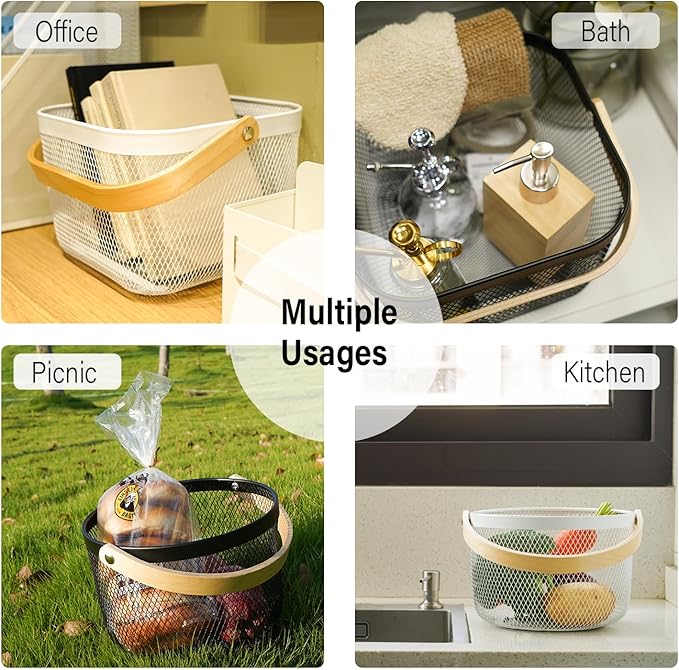 - 🧺Easy to Carry: Our harvest basket comes with high-quality handles so you can easily carry and move it around. You can use the outdoor basket to fill it with food to take on picnics, or you can use the wire mesh baskets as a fruit basket or garden basket for collecting fruits and vegetables, or you can hang it on a shelf for easy access to things.
