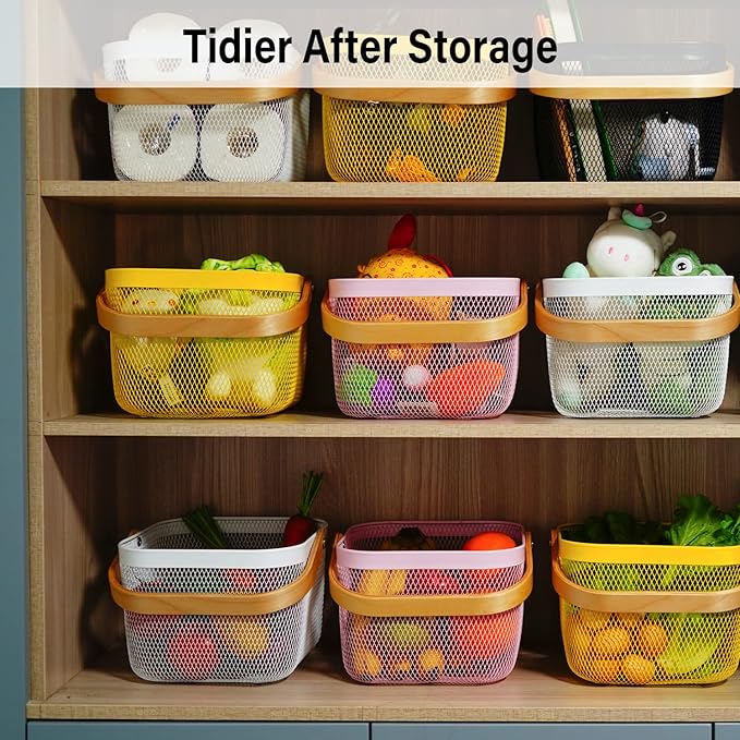 - 🧺Wide Use & Storage: Wire baskets for storage help keep your life organized and can be used to store a variety of household items and all kitchen essentials. Perfect for organizing and decorating in various scenarios, such as your home, office, kitchen, living room, bathroom, bedroom, pantry, picnic, and toy room.