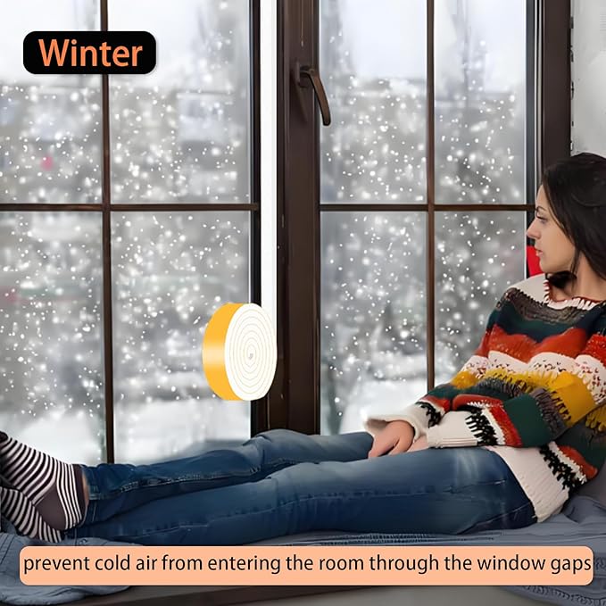 Weather Stripping,Weather Stripping for Door,Strong Adhesive, Lightproof, Soundproof Foam,Seal Strip for Door Frame,Window Frame(White,3/4 in x 3/8 in x 13Ft)