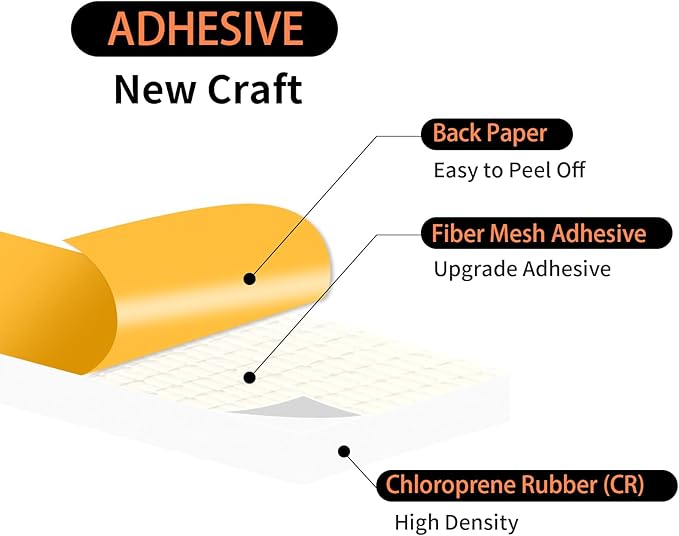 - Strong Grid Adhesive and High Density CR Material--Our weather stripping door seal strip adopt premium strong grid adhesive, guarantees the door seal strip for door frame sticks on firmly, waterproof.No longer worry about degumming or glue residue.The high density weather stripping is made of Chloroprene Rubber (CR), it has good sealing properties, deformation resistance,oil resistance, wear resistance, and weather resistance.