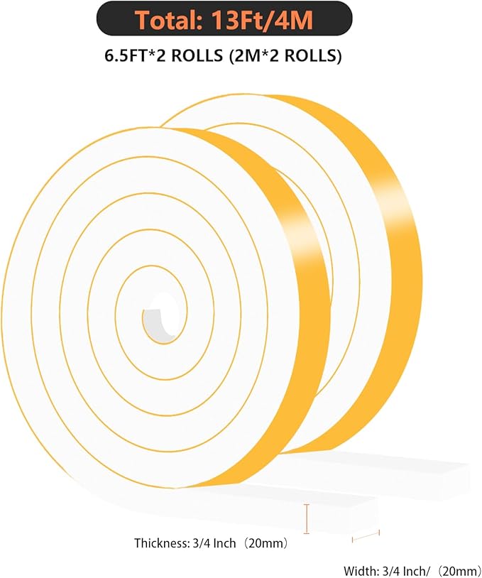 - Save on Energy Bill--Sealing gaps of the doors and windows with this foam tape, helps to reduce energy consumption, reducing the outflow of cold air in your room in summer and keep heating in winter.Insulation foam can help you reducing energy loss and helping you save on heating and cooling costs.