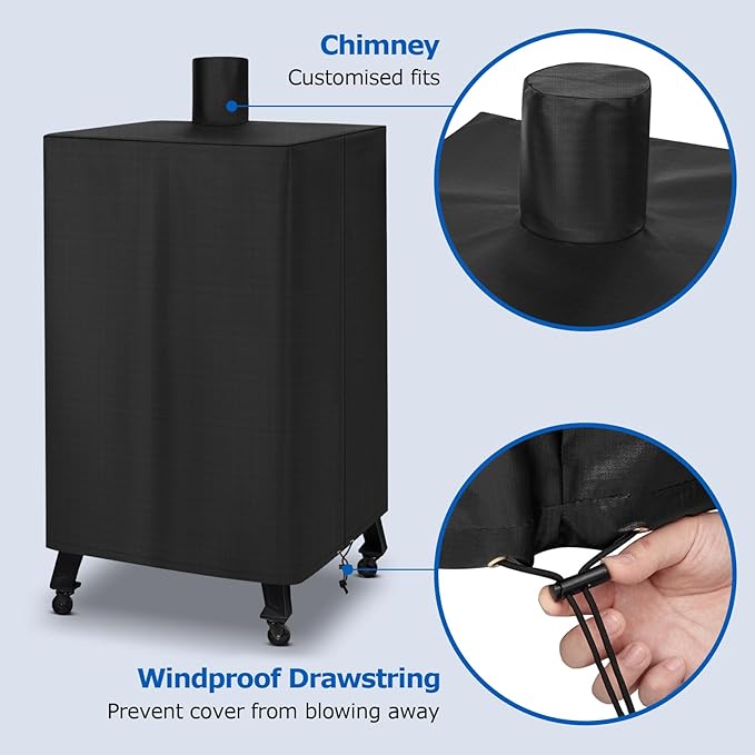 - ►Windproof: SunPatio pellet grill cover is attached with windproof drawstring, which prevents the cover from blowing away on strong windy day and also protects it from dust. You can adjust it to the right tightness for your smoker. Please measure the size of your bbq grill carefully before ordering