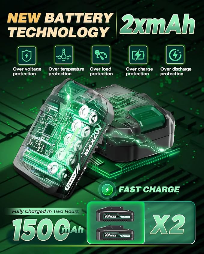 - ăRechargeable Battery for Cord-Free ConvenienceăThe Saker 6-Inch Cordless Mini Chainsaw operates on a high-capacity rechargeable battery, providing the freedom to work without being tethered to a power outlet. This battery-powered chainsaw ensures you can take it anywhere, whether you're cutting wood in your backyard, camping in the woods, or performing maintenance on your property. With the long-lasting battery, you can enjoy extended usage, making it perfect for completing multiple tasks in a single session. Plus, the battery is quick to recharge, so you're always ready to go when you need it.