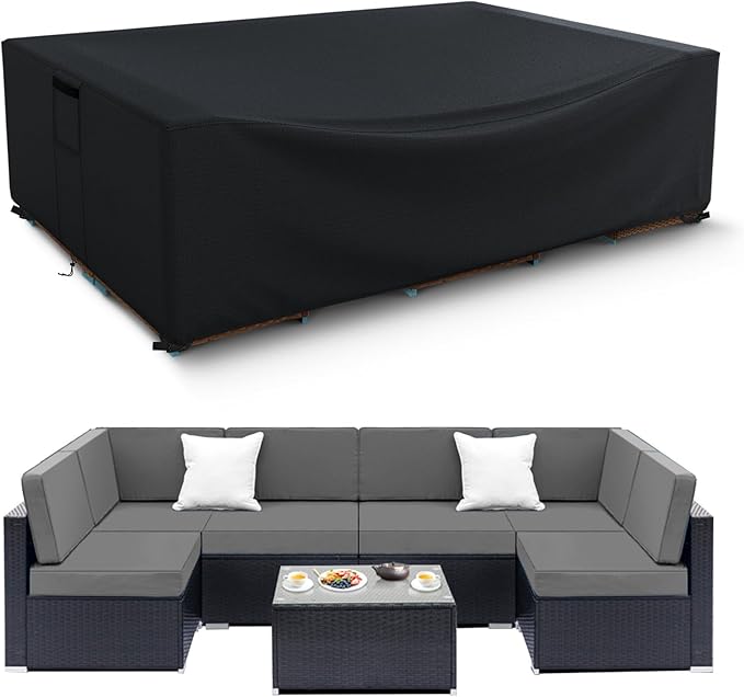 - PATIO FURNITURE COVERS - These patio furniture set covers are designed to prevent natural damage like rain, sun, wind, snow, dirt, dust, debris for your sectional sofa set or rectangular table and chair sets. Please measure your funiture size before purchasing.