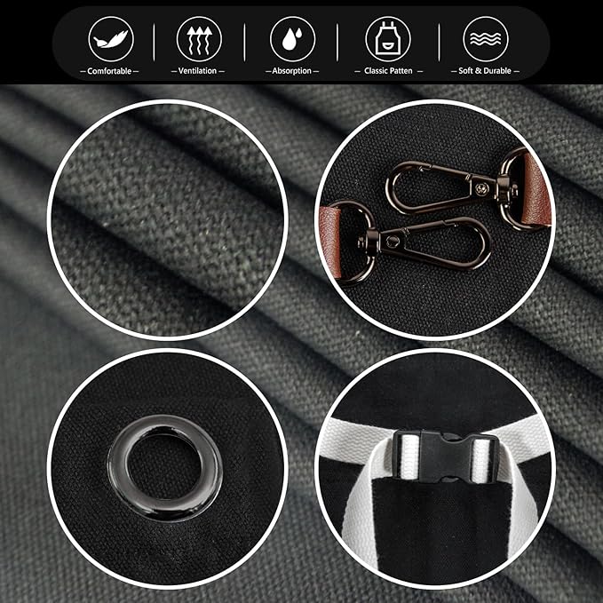 - Expert Craftsmanship: This apron is made of 12-ounce cotton canvas, metal grommets, rivets, and leather. The pockets are reinforced with metal rivets at the corners, with double stitching and bottom folding edges to increase strength and durability
