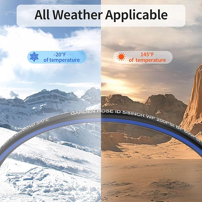 - Enhanced Durability: High-quality 5/8-Inch rubber pipes, built to withstand daily use and harsh conditions, ensuring leakage-free and long-lasting service.this hose supports working pressure of 200psi and burst pressure of 600psi, making them ideal for a variety of uses.