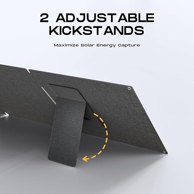- 3-FOLD, PORTABLE & FOLDABLE: This solar panels portable 100 watt is lightweight and compact, folding down to just 14'' x 15.6'' x 1.18'' and weights just 6 lbs—about the size and weight of a 15'' laptop. The travel solar panel is easy to carry under your arm, perfect for travel, camping and outdoor use. With 2 integrated adjustable kickstands, the portable solar panels let you tilt the panel from 0° to 180°, capturing up to 23% more sunlight compared to lying flat. NOTE: The folding solar panel cannot store electricity.