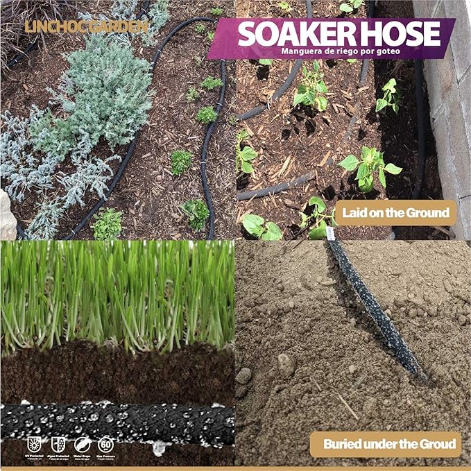 - Customizable Water Flow: Easily connect multiple hoses for extended coverage (up to 100ft); Perfect for uneven terrain,The LICNCHOC GARDEN Soaker Hose is lightweight and flexible, making it a breeze to maneuver around your garden