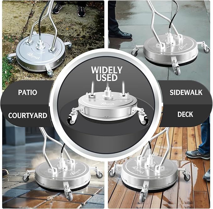 - PROFESSIONAL CLEANING - The RAYNEL surface cleaner offers commercial-grade cleaning within an area 20" wide.Ideal for cleaning stubborn stains on large flat surfaces such as patios, driveways, decks, sidewalks.