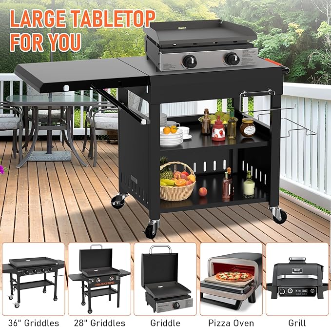 - Unlock L-Shaped Cooking Freedom: The side shelf includes 3 pre-drilled holes to attach your Blackstone 28" & 36” Omnivore griddle—instantly transforming your setup into an L-shaped outdoor cooking station. Perfect for big cookouts, it delivers a smooth-flow workspace to prep, grill, and serve like a pro.