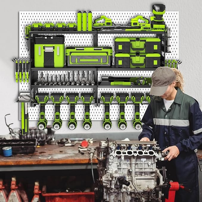 - 4 Layers Large Capacity:The garage tool holder can meet the needs of more than 50 kinds of tools placed, with a solid compartment can be placed in the screws and other small tools, the third layer of the heightened design is convenient for storing the tool box