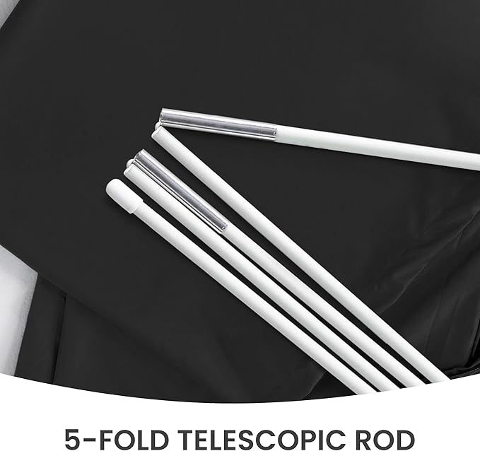 - 5 Fold Telescopic Rod: The 5-fold telescopic rod is 12.5 inches in size when folded and weighs 1.96 LB for easy storage; And the cleaning method is easy, you can wipe it with a damp cloth or wash it with water, and dry it up in the sun for next use