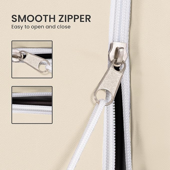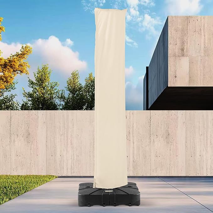 - Zipper Design: The long cord on the zipper head for easy removal; when you donโt use the heavy duty umbrella, just need to zip it up and the umbrella cover will protect your offset umbrella well when facing inclement weather such as rain or snow