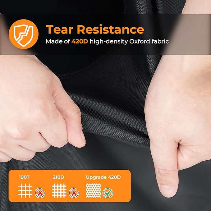 - 【Weather-Resistant Construction】 Made with 420D Oxford fabric and reinforced PU coating, this outdoor dining table protector features double-stitched seams to resist rain and snow exposure. The UV-resistant material helps reduce sun fading, and heat-deflecting layers adapt to seasonal temperature changes. Easy to wipe clean for routine maintenance.
