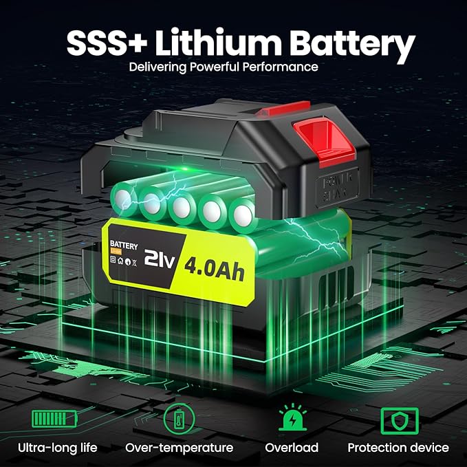 - 【Dual Batteries & Fast Charging】 Includes 2 powerful 21V-4000mAh batteries and a rapid charger, providing up to 26 minutes of continuous runtime (13 minutes per battery). The quick charger ensures minimal downtime, allowing you to maintain a clean and tidy garden effortlessly.