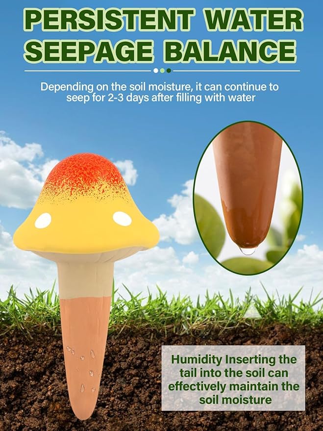 - 【Unique Shape】The plant watering globe is in the shape of a mushroom, made of terracotta, and comes in different colors, which look the most lively and decorative in plant pots.