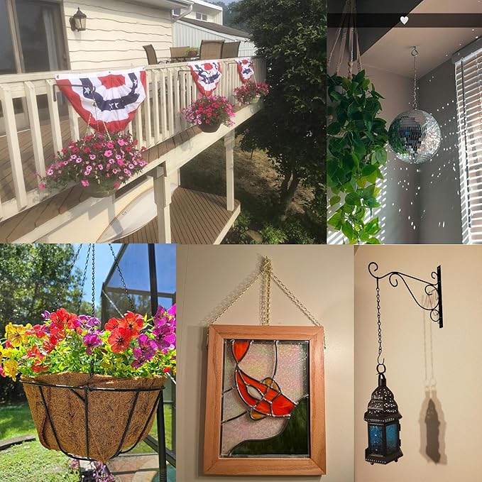 - Hanging Basket Chain: Hanging chains capable of holding up to 12 pounds, Very sturdy.Great for planter hanging,got these to hang your plant hangers from the ceiling.hanging plants easier to water.Plants make your house lively.