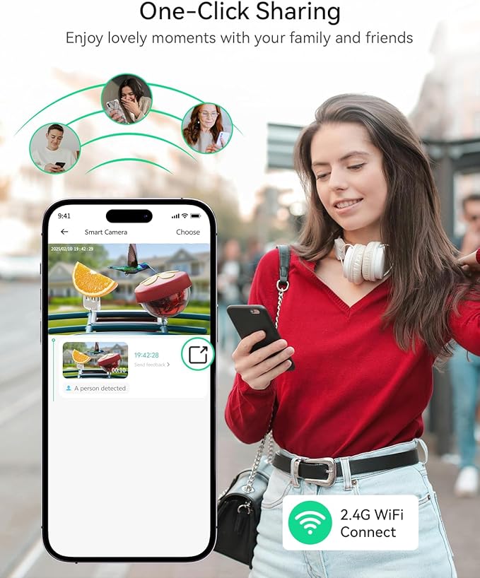 - 【Smart AI Recognition and Bird-watching】:The camera bird feeder APP has advanced AI Bird Identification, accurately identifying over 10,000 bird species (30-day free AI trial, After the end of the trial, you can choose to continue with a monthly or annumal subscription for up to $4.49 per month). It supports motion detection & real-time viewing. With a built-in two-way audio function and alarm, it can drive away unwanted visitors with a click.