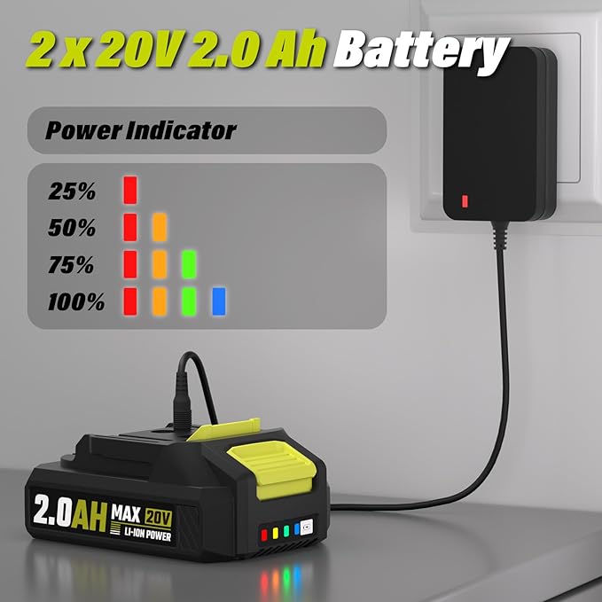 - 2 x 2.0 Ah Battery: Up to 30 minutes working time.The SEYVUM string trimmer comes with 2 pcs 2.0Ah lithium-ion battery and 1 hour fast charger. Please make sure the battery is cool before charging