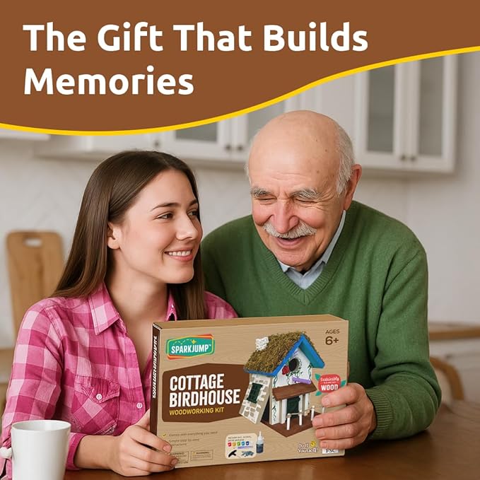 - ALL-IN-ONE BIRDHOUSE KIT - SparkJump Cottage Birdhouse Kit includes everything you need to build your own charming birdhouse for outdoor use, featuring high-quality wood, natural cedar, stones, and moss.