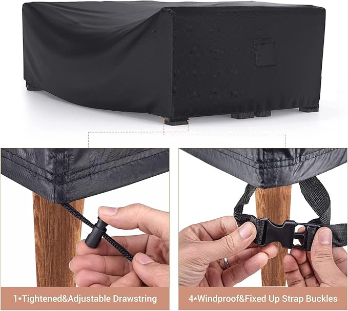 - [EASY TO INSTALL]: Our cover is designed with four click-close straps and cord-lock closure at bottom to keep the cover attached to the furniture. It is convenient to install or remove the cover.