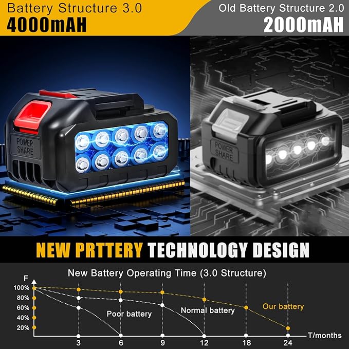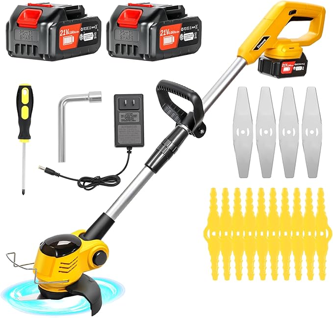 - 4000 MAh Large Capacity Battery: Cordless weed trimmer is equipped with two 21V 4000 mAh lithium batteries. Each battery is carefully designed and has a battery life that is twice that of ordinary batteries on the market. Each battery can work for 40-60 minutes (70-90 minutes without load). The charger can provide longer running time to ensure that you can complete the project uninterruptedly (please fully charge the battery before use to avoid affecting the use experience)