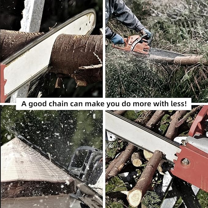 - FEATURES OF 20 INCH CHAINSAW CHAINS: German steel, Smooth cutting and optimal lubrication, wear-resistant, high hardness, hardened rivets, durable and practical, precision, heat-treated full-chisel chain. Saw chain comes with protective oil, resists corrosion. Easy to install and replace.