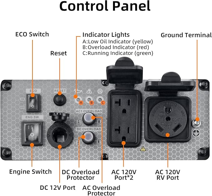 - ๐๐จ๐ฐ ๐๐จ๐ข๐ฌ๐: Under 72 dBA from 23FT away, this generator provides steady power for your home during a power outage or RV nights.