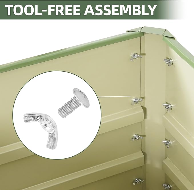- TOOL-FREE ASSEMBLY & DURABILITY - Easily assemble with included wingnuts and bolts featuring rubber edges for safety. Sturdy powder-coated steel panels can be exposed to the sun, rain and snow for a long time, Reinforced cross bars and fixed piles have been added to help the metal panel maintain its shape and prevent warping and soil leakage over time.