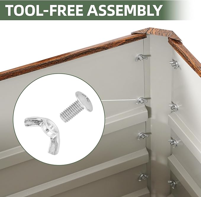 - TOOL-FREE ASSEMBLY & DURABILITY - Easily assemble with included wingnuts and bolts featuring rubber edges for safety. Sturdy powder-coated steel panels can be exposed to the sun, rain and snow for a long time, Reinforced cross bars and fixed piles have been added to help the metal panel maintain its shape and prevent warping and soil leakage over time.