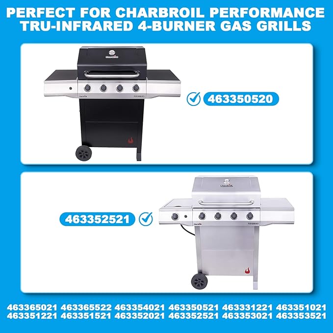 - Perfect Fit: Specifically designed to fit for Charbroil Performance 4-Burner Gas Grills 463365021 463365522 463354021 463350521 463331221 463351021 463351221 463351521 463352021 463352521 463353021 463353521.for CharBroil Performance 2 burner 463630021 463660421 463660021463655021 463655421 463655621 Gas Grill;