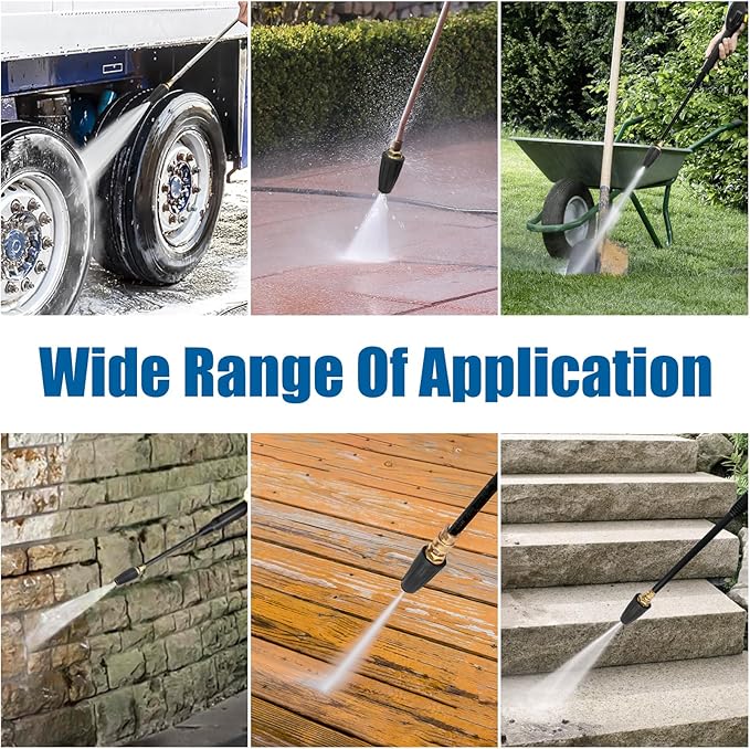 - Wide Applicability:The pressure washer turbo nozzle is compatible with most high-pressure cleaners, making it perfect for a variety of cleaning tasks. Whether you need to remove rust, concrete pressure washer attachment, clean metal or plastic tanks, wash boats, clean dirty garage floors, strip paint from wood exteriors, or remove mud and clay from highway and construction equipment, this quad turbo nozzle pressure washer has you covered.