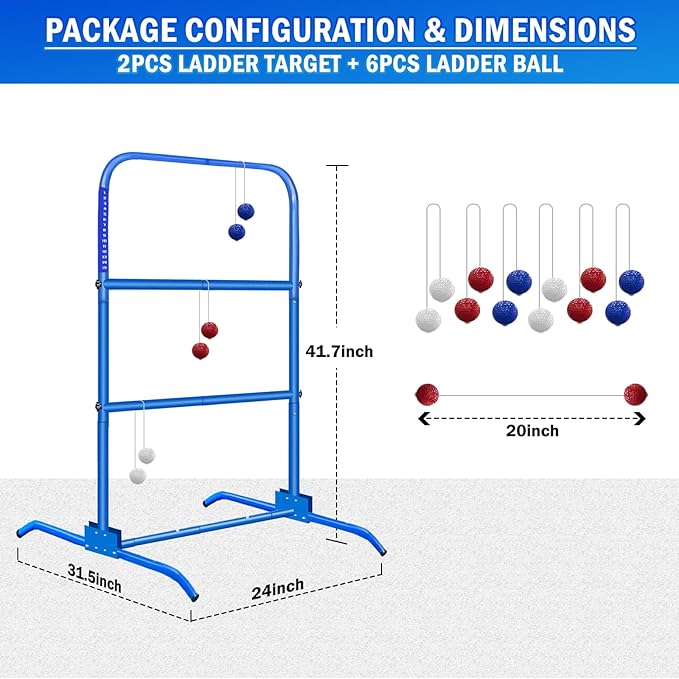 - Magnetic Scoring Hub & Color-Coded Ladder Balls: Slide magnetic sliders to tally points on 1-15 tracks. First to 15 wins. Customize gameplay with 6 ladder balls (2 red, 2 blue, 2 white) for teams or strategic modes.