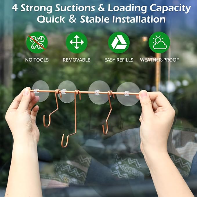 - Strong Mounting System:Window hummingbird feeder with suction cup,making it easy to install and adjust.The thoughtful 4-point design ensures stability in all weather conditions. Perfect placement for viewing hummingbirds while keeping the feeder safely attached to any window surface(no need to worry about it falling)