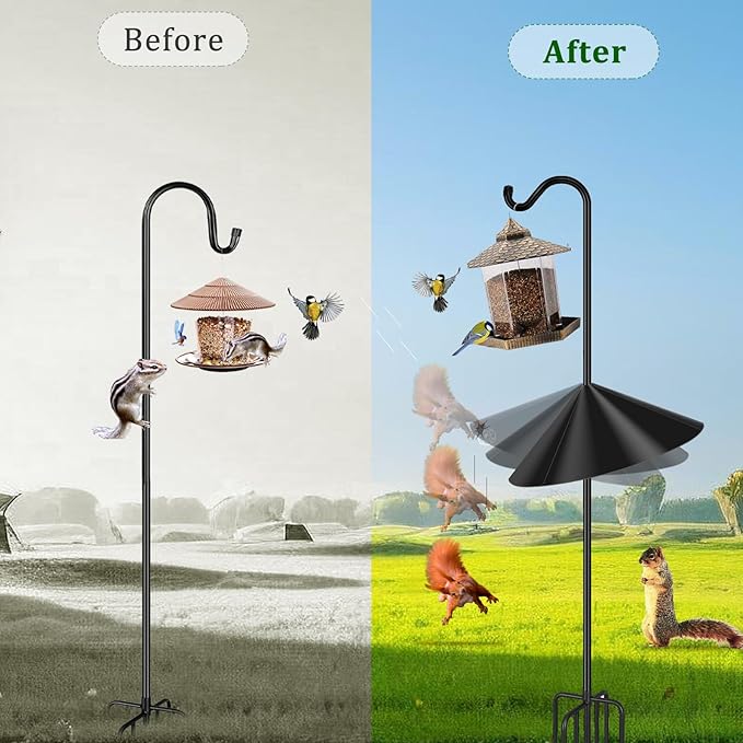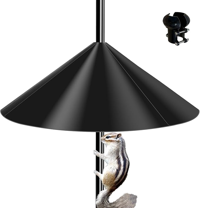 - [ Innovative Big & Wide Design ] Our squirrel baffle for bird feeders features an impressive 19'' diameter. This large size outperforms others, providing a more comprehensive wrap around bluebird house poles. The enhanced jitter effect acts as a powerful deterrent, preventing rodents from either flying up or climbing onto the baffle. Greedy squirrels and raccoons will find it nearly impossible to step over this 19 - inch guard.