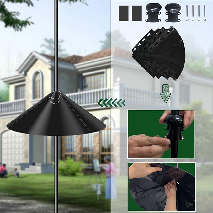 - [ Quick & Hassle - Free Cleaning ] The squirrel protector's ultra - slippery surface stops squirrels from climbing the bird feeder. Its glazed finish also makes dirt removal easy after long - term outdoor use. Unlike metal baffles, our PP pole - mounted baffle resists rust, keeping your outdoor space looking tidy.