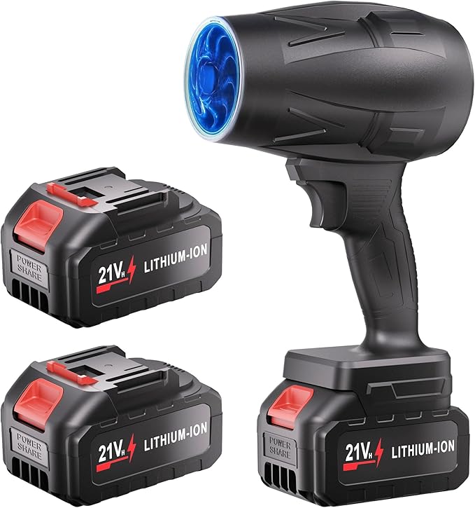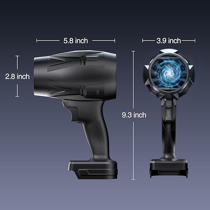 - 【Powerful & Efficient】Equipped with a high-speed turbine motor this cordless leaf blower spins at up to 130,000 RPM, generating a high-speed airflow of 52 M/S. Its long-lasting, stable power ensures that it won't overheat when working at full capacity for long periods of time, making yard cleanup faster and easier than manual raking.